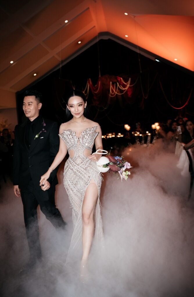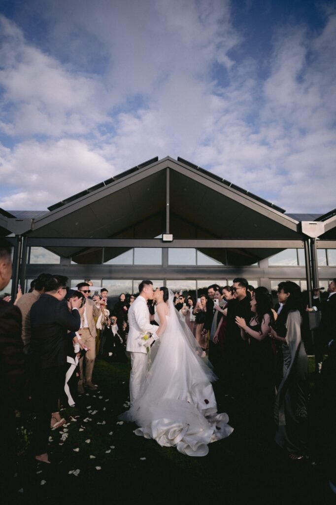The most unforgettable moment came when Ken and Jennifer arrived not by car, but by helicopter. As the blades cut through the sky and the couple stepped onto The Tiller Farm, all eyes were on them. Beneath the golden glow of the Australian sun, they exchanged vows surrounded by the vast landscape, a scene that felt both cinematic and deeply personal.